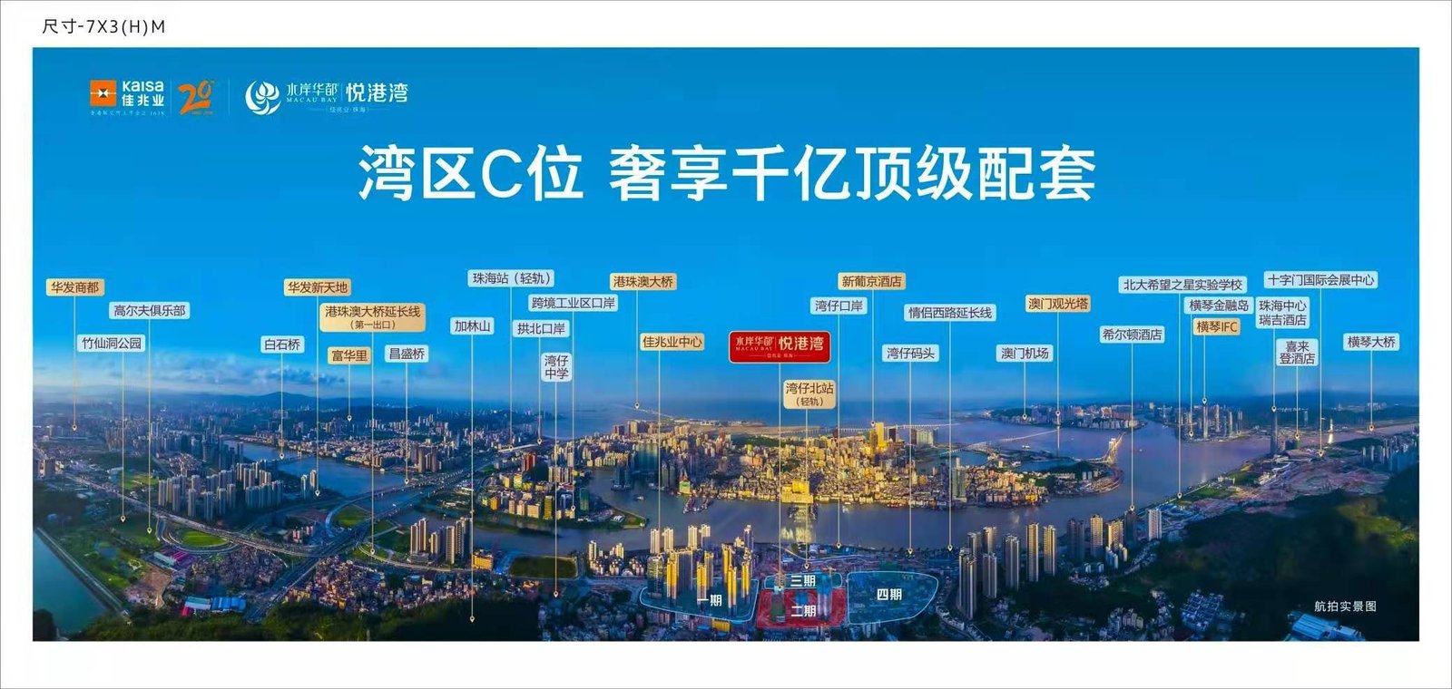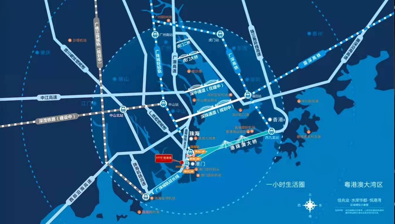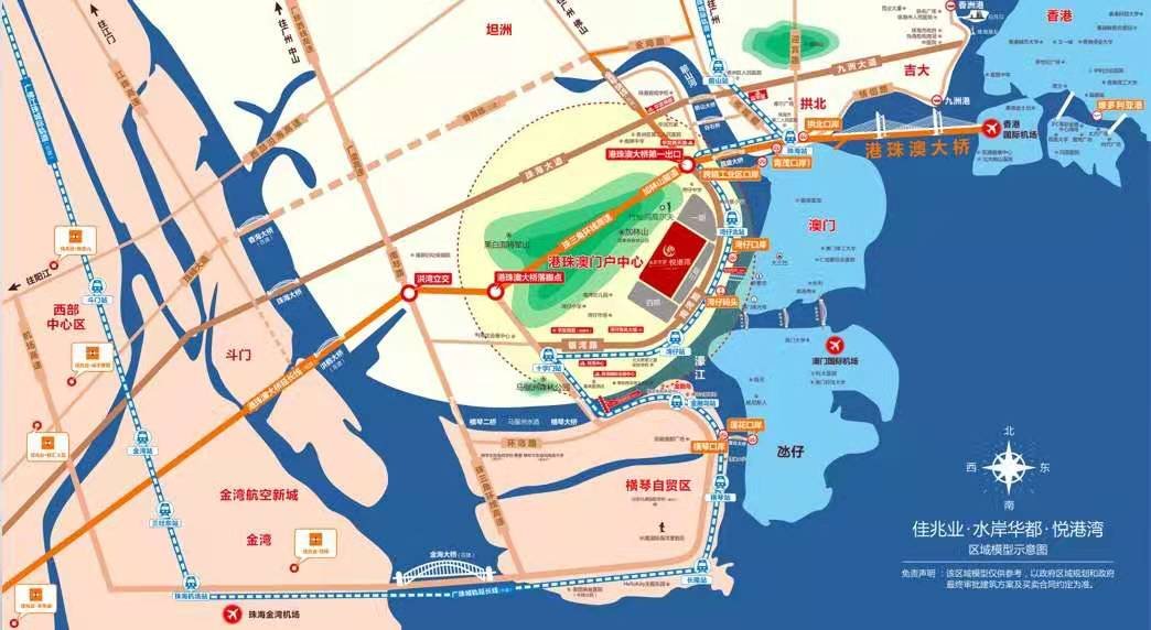 佳兆業水岸華都悅港灣,一橋&一軌道&二港口&五機場無縫接駁國際:1座跨海大橋:港珠澳大橋橫跨三地,已於2018年通車,項目位於大橋下橋點,前往香港僅需40分鐘。1條城際輕軌:珠海珠機輕軌起點設在拱北輕軌站,終點設在珠海機場站,輕軌在南灣設三個網站(灣仔北、灣仔、十字門)。其中,灣仔北站就在項目旁,通車後前往機場僅需30分鐘。2大客運港口:項目距離九州港、珠海港僅30分鐘車程,兩港口每日往返香港航班122趟,深圳航班50趟。5大核心機場:輕鬆接洽澳門國際機場、珠海金灣機場兩大機場,執掌世界藍天。同時距離香港、深圳、廣州機場均控制在2小時以內。全通快速路網:踞守橫琴必經之路要道,坐擁珠三角環線高速、西部沿海高速、機場高速、廣澳高速、江珠高速、珠海大道、九洲大道、南灣路三橫五縱道路交通。