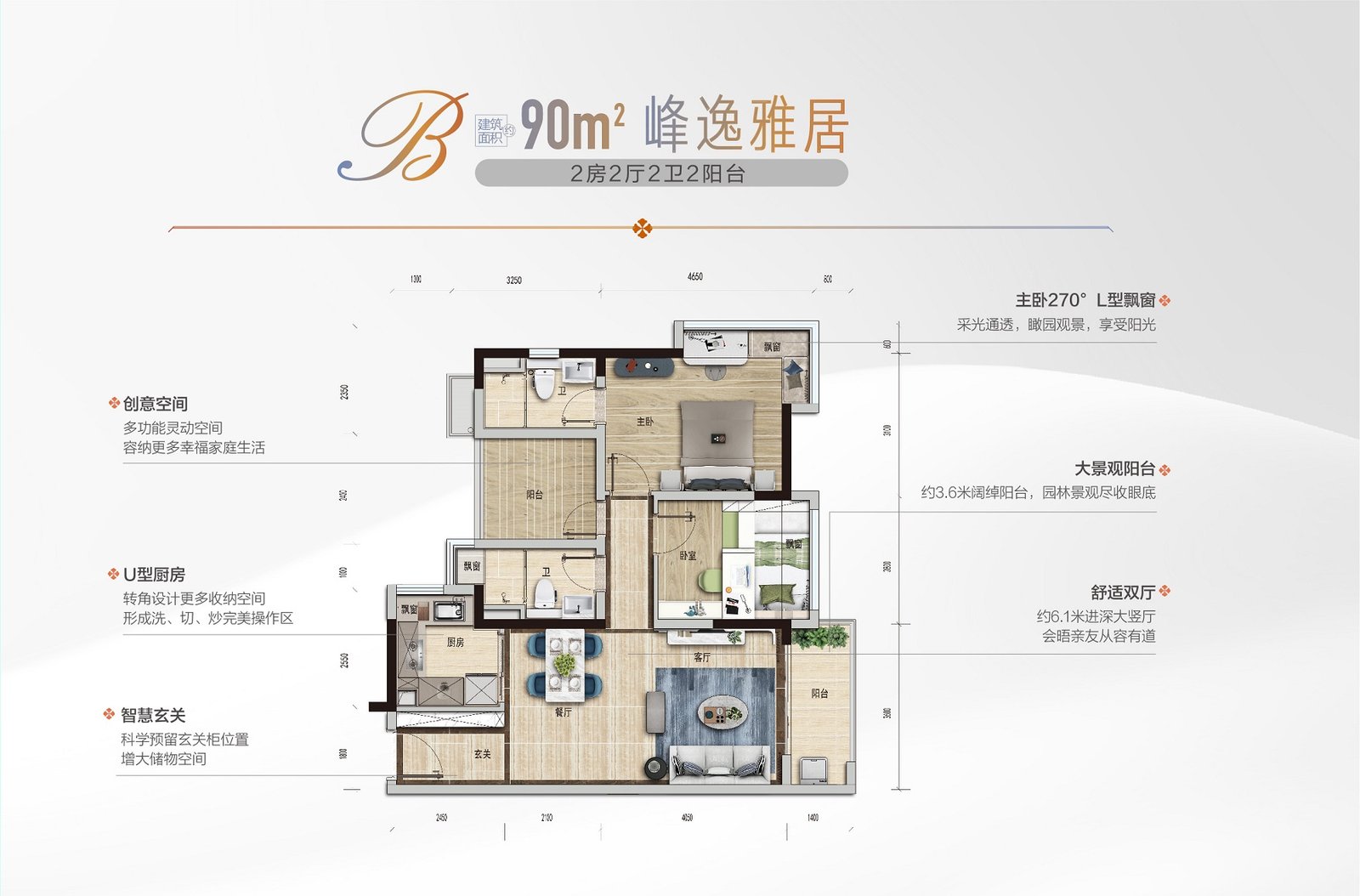 90m2, 3房2廳2衛