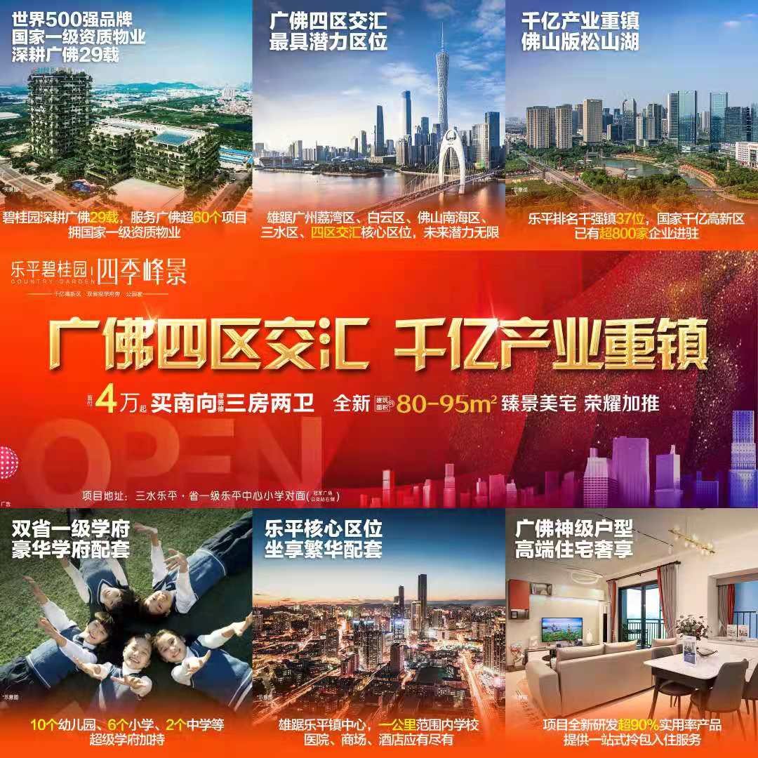 【入駐峰景】①世界500強 深耕三水9大名盤繼三水碧桂園·華府、碧桂園翡翠山、樂平碧桂園、碧桂園·奧斯丁星薈、碧桂園·奧斯丁都薈、龍光碧桂園·悅府、碧桂園·佛山雙子星,碧桂園已為超萬戶三水業主匠心築家。如今匠心再築